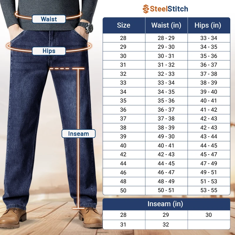 Please refer to the size guide below to get your correct size of waist and inseam length.